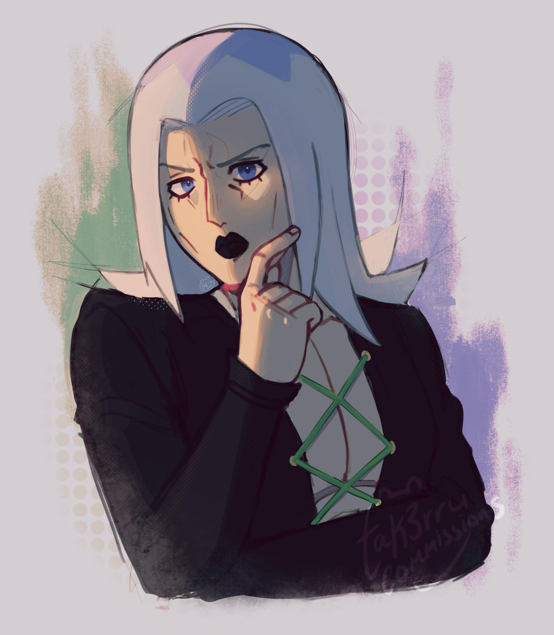 Please keep in mind that I do not have one consistent rendering style or a brush I consistently use! So if you have a preference, please refer back to the provided examples and let me know which style you prefer me to render in. Because of this, I recommend you take a glimpse at every example provided. (Eg: I would like the style shown in "Headshot: Example A")Contact me at tak3rry (discord, twitter) or tk.m0ss via dm (state that you're looking to commission and what kind!)